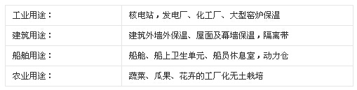 巖棉可根據不同用途制成:氈、條、管、粒狀、板狀等,應用于:
