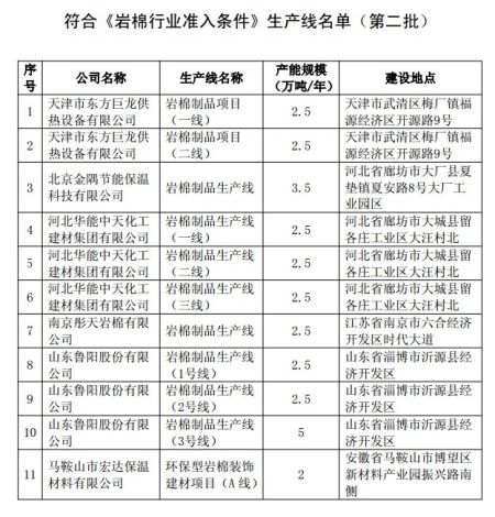 工信部網站25日消息,符合《巖棉行業準入條件》生產線名單(第二批)公告,11條生產線入圍。