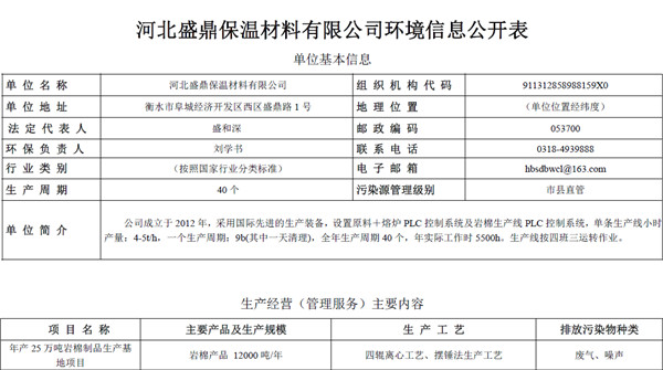 河北盛鼎保溫材料有限公司環(huán)境信息公開(kāi)表